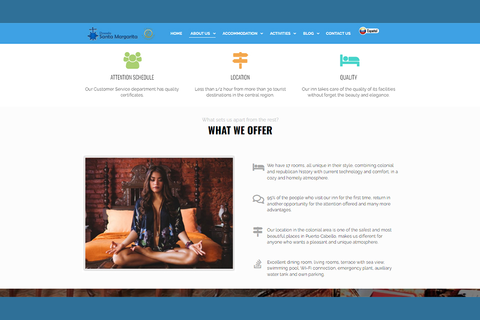 Empresa dedicada a ofrecer servicios de hospedaje que forman parte del sector de la hostelería. Con la modernidad de ajustarse al idioma universal (Ingles) y su versión original (Español) en su pagina Web, que la hace muy atractiva para sus visores.